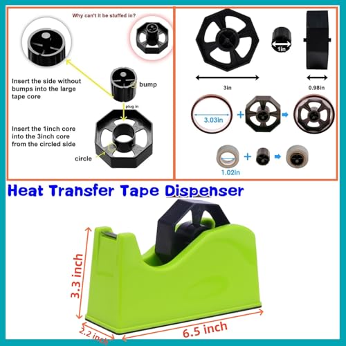 🌺【HEAT TRANSFER TAPE DISPENSER】: The desktop tape dispenser has a sharp blade to cut the required length of tape easily and quickly. It lasts long and cuts off the tape immediately and neatly. Besideds, it allows you to multi-task while dispensing the required amount of tape. You can easily use it while talking on the phone while typing or writing.