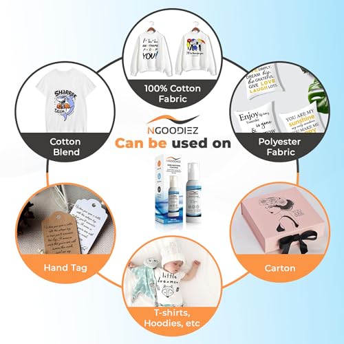 Excellent Performance: NGOODIEZ sublimation spray for cotton tshirts leaves no sticky or visible residue on fabric, ensuring a clean and professional finish. Crafted with a unique non-toxic formula, suitable for use on clothing and other personal items.