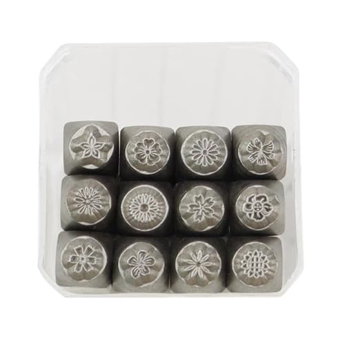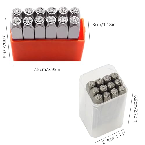 12Pcs Metal Stamping Tool Set 1/8” 1/4” (3mm 6mm), Steel Flower Punch Set Leather Stamp for Jewelry Making Craft