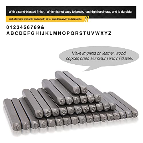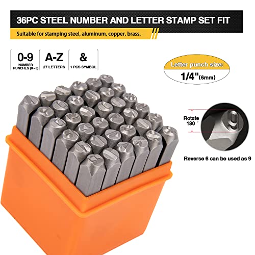 Metal Letter Punch Set 1/4 (6mm) – 36PCS Steel Metal Stamp Number & Letter Punch Set for Imprinting Metal Stamping, Plastic, Wood, Leather