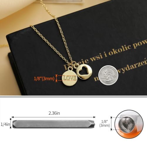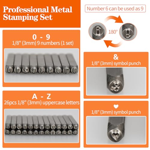 【Metal Stamping Set】- Package includes a steel bench block, a stamp hammer and 37pcs 1/8″(3mm) punches set, including “A-Z” letters, “0-9” numbers, a “❤” and a “&” symbol punches.