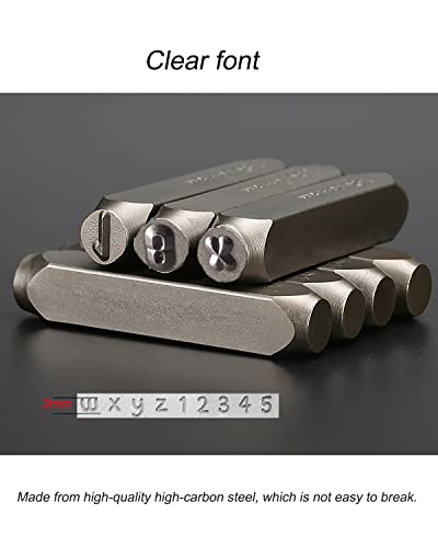 Professional Metal Stamping Kit&chromium-vanadium steel:You will immediately enjoy the complete DIY Metel Stamping kit! It includes (1/8”) 3mm punch set,(The raw material of the punch set is chromium-vanadium steel, which has high hardness, and the engraved text is clear.) professional Steel Bench block, Metal Stamping Jig and a metal stamping hammer.1/8/3mm punch set, includes “A-Z” letters, “a-z” letters, “0-9” numbers, a heart symbol (❤), an ampersand (&).All stamps are made of high quality and high carbon steel for strength and hardness.