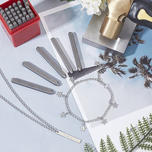 PH PandaHall 36 Pcs Letter and Number Metal Stamp Set, 1/20 inch 1.5mm Alphabet A-Z and Number 0-9 and Symbol, Iron Uppercase Stamps Punch Press Tool for Imprinting on Metal Jewelry Leather Wood