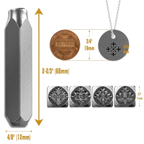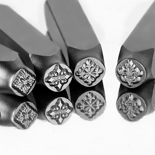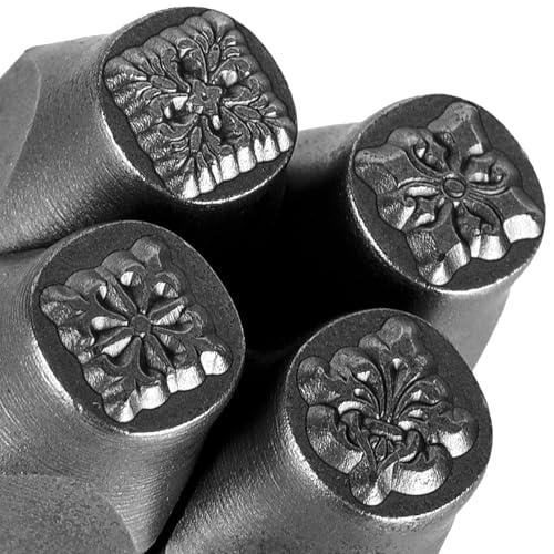 The Craft Guy 4pcs Vintage Style Metal Stamping kit 5/16″ (8mm) Steel Metal Stamp – Handcrafted Iron Stamp for Jewelry, Steel, DIY Crafts, Impress Leather Stamps with Classic Patterns