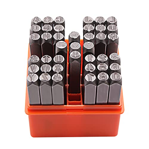 Tlimus 41-Piece Number & Letter Metal Stamping kit, 6MM (1/4″) (A-Z & 0-9 + /✫/Anchor/∞ Symbol) Metal Letter Stamps DIY Arts & Crafts Leather Stamps, Leather, Wood for Jewelry Stamping kit