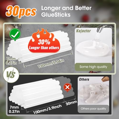 【Complete starter kit:】 Includes 30 high-quality clear glue sticks to get you started quickly. Note: Do not touch the nozzle during or after use, just hold it by the handle.