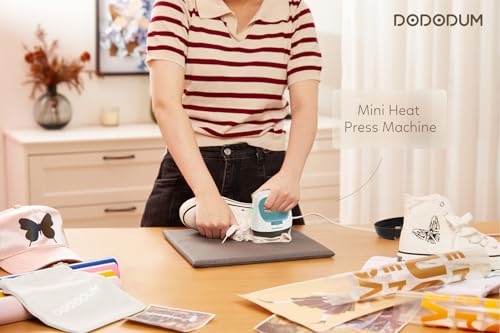 DODODUM Heat Press Easy to Use for small or unique heat transfer projects and sublimation ink projects. It’s suitable for transferring photos or text on T-shirts, clothing, bags, mouse mats, etc, and some unusual projects like hats, shoes, or stuffed animals