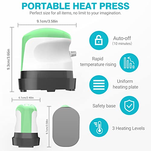 Mini Heat Press Machine for Crafts, T Shirts, Shoes, Hats, and Small Vinyl Projects (Green)