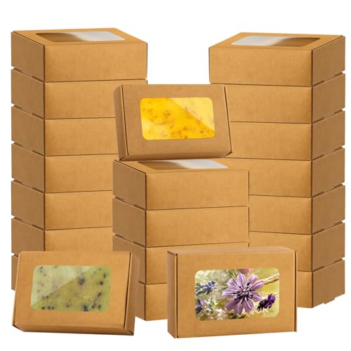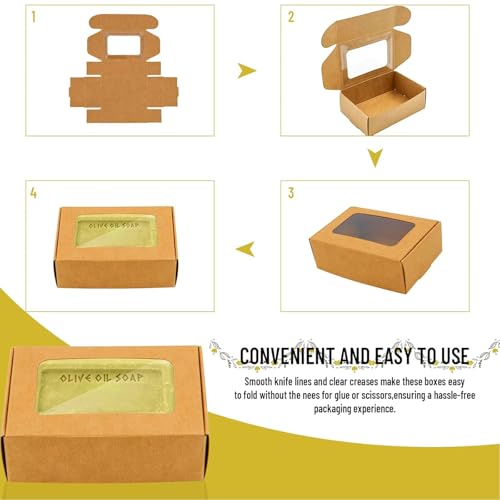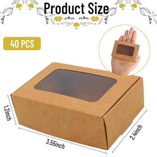 RYKOMO 40 PCS Soap Boxes for Homemade 3.55 x 2.4 x 1.2 Inch Small Soap Paper Box Mini Kraft Treat Box with Window for Homemade Soap Packaging Boxes Supplies