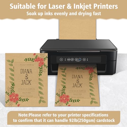 【Printer-Friendly】Brown cardstock is perfect for double-sided printing, the matte material dries ink quickly and provides bleed-free performance. Compatible with Inkjet, Laser and Copiers. Check your printer’s maximum thickness(92lb/250gsm) specification before printing.