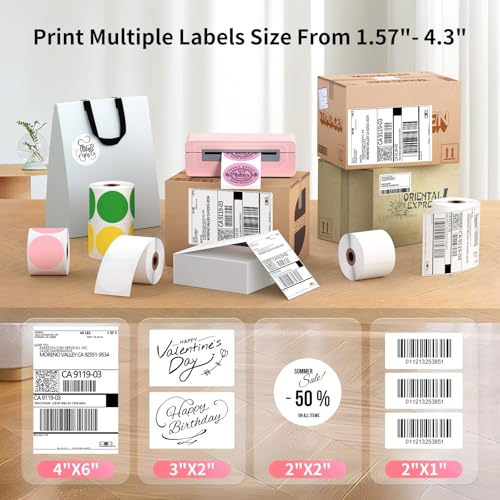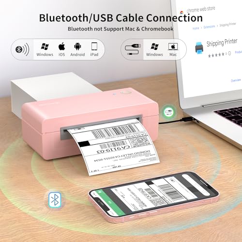 Bluetooth Thermal Shipping Label Printer, 4X6 Inkless Label Machine for iOS, Android, Laptop, Wireless Printer for Small Business, Compatible with Amazon, UPS, Shopify, Pink