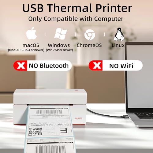 ONLY BE CONNECTED TO A COMPUTER VIA USB: The ORGSTA 4×6 label printer includes a USB drive with an easy-to-install driver; It connects seamlessly to your PC or laptop via USB and is compatible with Windows (Windows 7 SP1, Windows 10/11 x86/x64), Mac OS (Mac OS 10.15.4 or newer), Chrome OS and Linux for reliable performance (For Windows, ARM-based PCs like Surface Pro X are NOT compatible.)