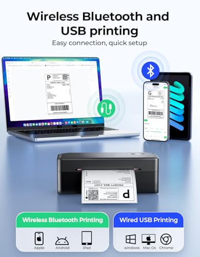 User-Friendly Design: Compact and portable, the Bluetooth thermal printer is designed for easy use in any workspace. The package includes the 4×6 label printer, USB cable, test labels, user manual, and power adapter, so you can set up the printer with ease. If you have any questions, feel free to contact us