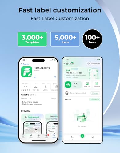 Versatile DIY Labeling Options: Equipped with the user-friendly FlashLabel Pro app, this shipping label printer provides access to over 3,000 pre-designed templates, 5,000+ icons, and 100+ fonts. Print quickly and easily with no complicated setup