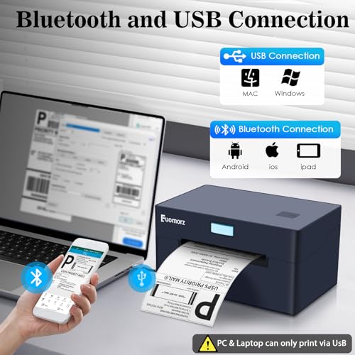 Flexible Connectivity Options: Label printers offer easy Bluetooth connectivity. Simply download the Android “Print Label” or iOS “Zlabel” app to connect via Bluetooth. Compatible with iOS, Android, and Windows 7 and above. Mac version provides plug-and-play USB connectivity. Ideal for shipping label printing, delivering a smooth printing experience.
