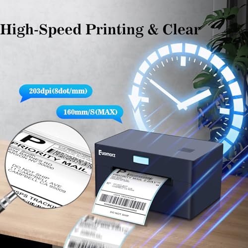 High-Speed Thermal Label Printing: Boost efficiency with this thermal printer’s high-speed printing at 160mm/s, producing up to 75 4×6 labels per minute. Ideal for high-volume shipping tasks, it reduces processing time and streamlines operations for smoother workflows.