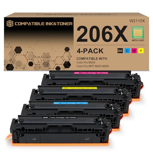 Compatible with: HP Color Pro MFP M283fdw M283cdw M283fdn M283 Printer; Color M255dw M255nw M255 Printer; Color Pro MFP M282nw M282 Series Printers compatible with 206X hp toner cartridge set