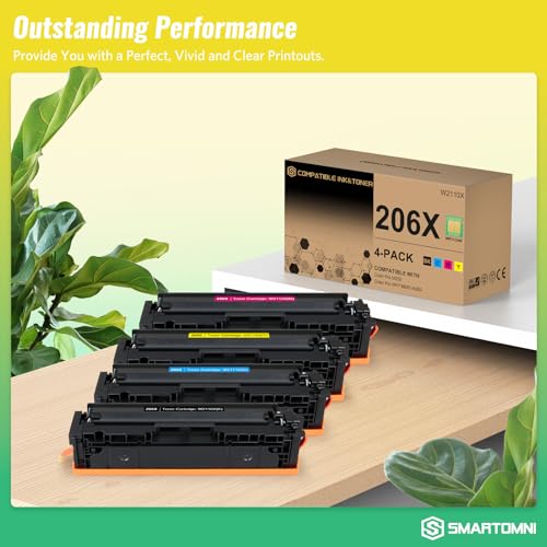 With Latest Patent chips: S SMARTOMNI 206X toner cartridges come with chips installed to save time and avoid common printing problems. Our smart chip can help color adjustment to ensure vibrant colors and rich blacks. And with our Track Toner Level technology, your printer can accurately display toner levels to reduce waste and maximize print throughput. Customers can also know when to pre-order a replacement toner cartridge.