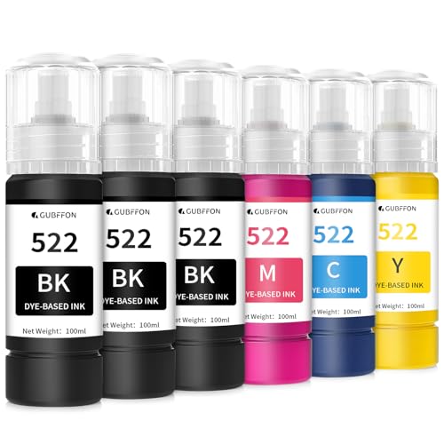 600ml 522 Ink for EcoTank ET-2800, ET-2400,ET-4800,ET-2803,ET-2720, T522 Auto Refill Ink Bottle Replacement Liquid (6x100ml 3K,C,M,Y) (Not Sublimation Ink)