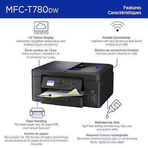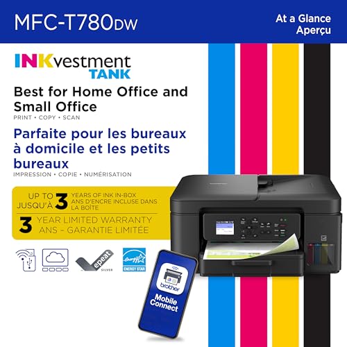 Brother INKvestment Tank 780 Wireless Color Inkjet All-in-One Printer with Duplex Printing | Includes up to 3 Years of Ink in-Box(1) and a 3-Year Limited Warranty(2) (MFC-T780DW)
