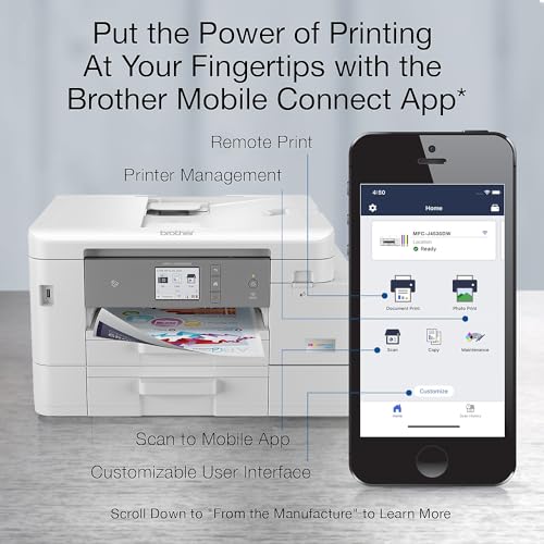 Tackle large print jobs with ease using the Brother MFC-J4535DW INKvestment Tank Wireless Color Inkjet All-in-One Printer. Perfect for busy home offices and small businesses, this printer delivers up to 1 year of ink right in the box¹ — no frequent refilling or interruptions. The revolutionary INKvestment Tank system combines high-yield cartridges and a built-in internal tank to ensure continuous ink supply. Print, copy, scan, and fax effortlessly with versatile features like duplex printing, a 400-sheet paper capacity, and NFC one-touch mobile printing. Stay connected and productive from anywhere using dual-band wireless, Wi-Fi Direct®, Ethernet, USB, or the free Brother Mobile Connect App². Brother Page Gauge keeps you informed about ink usage, and Alexa compatibility offers smart ink management and reordering for total peace of mind.