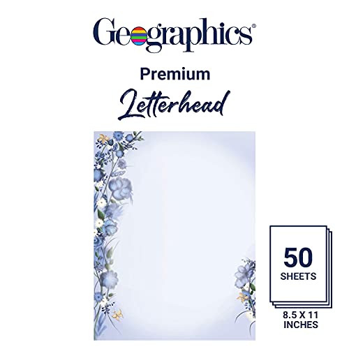 Geographics Blue Floral Dream Letterhead Paper, 32 lb. Design Paper, 8.5 x 11″ (Pack of 50)