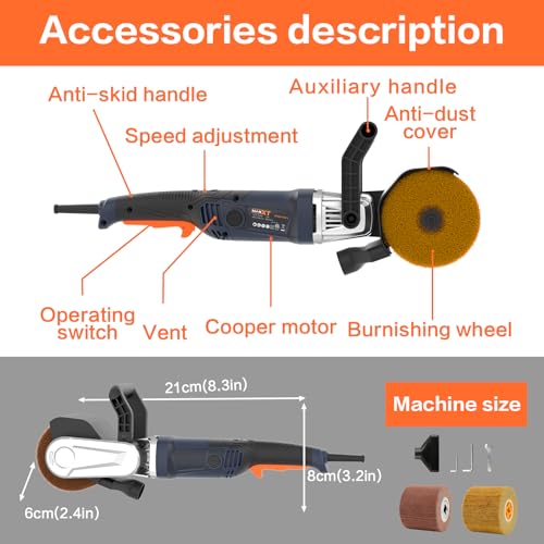 MAXXT Burnishing Polishing Machine, 1300w Surface Conditioning Tool, 6 Speed Variable 3200RPM Motor Drum Machine Grinder, Handheld Electric Stainless Steel Polisher With 3 Polishing Wheels