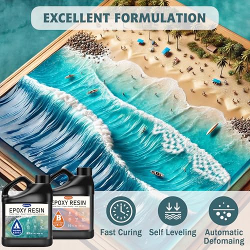 IGaiety Epoxy Resin, 64 OZ Epoxy Resin Kit, Fast Curing Clear Casting and Coating Epoxy Kit No Yellowing High Gloss Craft Resin for Wood Table Top, DIY Art Crafts (32 OZ+32 OZ)
