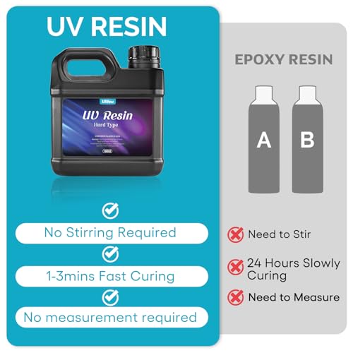 Fast Cured and Easy to Use: UV cure resin that both beginners and professionals can quickly get started with is not as complicated as A B epoxy resin. Our clear UV resin only needs to use a UV lamp to be irradiated on the front and back of the mold for 1-3 mins each(recommended to use a UV lamp above 36w). Note: Before use, please make sure your model is clean and free of oil and other foreign matter, and use a clear resin mold