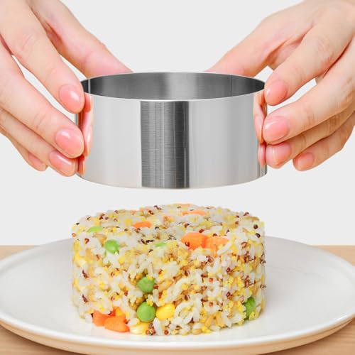 Multipurpose: Excellent for baking, layering and molding. Use food ring mold for baking pastry, cookies, biscuit, sandwich, pie, appetizers, molded salads, cakes, mousse, chocolate and desserts, etc. Measuring 4″Dia x 1.6″H, gives food a beautiful round shape