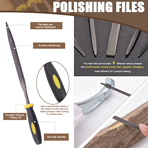 With 5Pcs Polishing Files and 4Pcs Polishing Sticks —— The resin files set includes 5 different various shapes files(half round, round point, flat, square, triangle.), meet different DIY product making. Each stick is double-sided for twice the life, with a semi-flexible plastic in the middle for a firm grip and added pressure when working in confined areas.