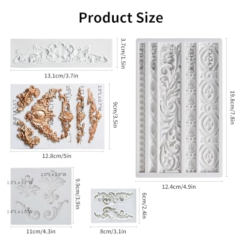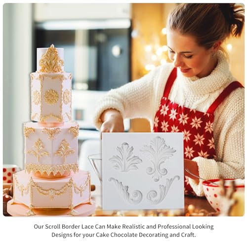 GROWTAIL 5Pcs Baroque Fondant Border Mold,Baroque Silicone Molds,Scroll Lace Fondant Silicone Molds for Crafts, Cake Decorating Polymer Clay Molds