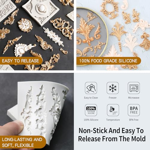 Food Grade Material: The fondant molds are made of food grade silicone.Our baroque border silicone molds can be used in oven, dishwasher, refrigerator and so on. could withstand within the temperature between -40-220 centigrade(-40 Fahrenheit to 464 Fahrenheit)