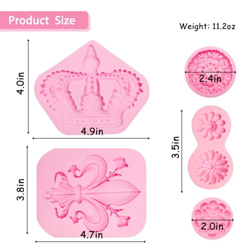 VERSATILE DESIGN: Set includes royal crown, fleur-de-lis, and decorative baroque pattern molds perfect for creating elegant cake decorations and craft projects