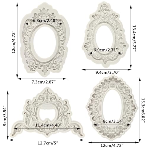 Sijiangmold Photo Frame Silicone Molds Baroque Style Picture Frames Fondant Mold for Cake Decorating Cupcake Topper Polymer Clay Gum Paste Set Of 4