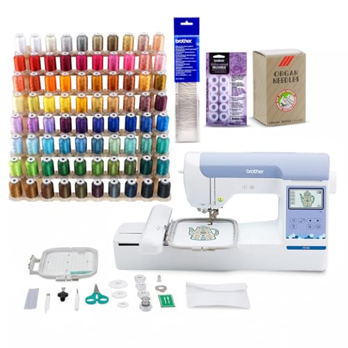 Bundle Includes: Brother Elite PE900 Large Embroidery Machine, 80 Spools Polyester Embroidery Thread Kit 500M Each – Janome Compatible Colors, Brother 100-Piece 75/11 Organ Embroidery Needles (Silver), Brother Pre-Wound Embroidery Bobbins – 10-Pack & 105 Yards/Bobbin, Brother Stabilizer Roll – Lightweight Water Soluble (3.2 Yards/Clear).