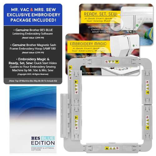 Brother NQ3550W Sewing & Embroidery Machine, 6″ x 10″ Field Size, 291 Sewing Stitches, Includes BES Lettering Software + Brother Magnetic SAMF180 Hoop + Mr. Vac & Mrs. Sew – Embroidery + Sewing Videos