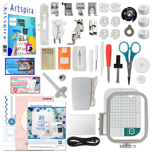 BUNDLE INCLUDES: Brother Artspira App, 135 Built-in Embroidery Designs, 103 Built-in Sewing Stiches, 500 in Sofontsy Design Cards for Embroidery Designs – SVGs, JPGs, Commercial Use (Each card is good for up to 30+ designs)