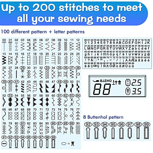 Portable Sewing Machine Computerized Embroidery Sewing Machine with 200 Unique Built-in Stitch and 8 Buttonholes