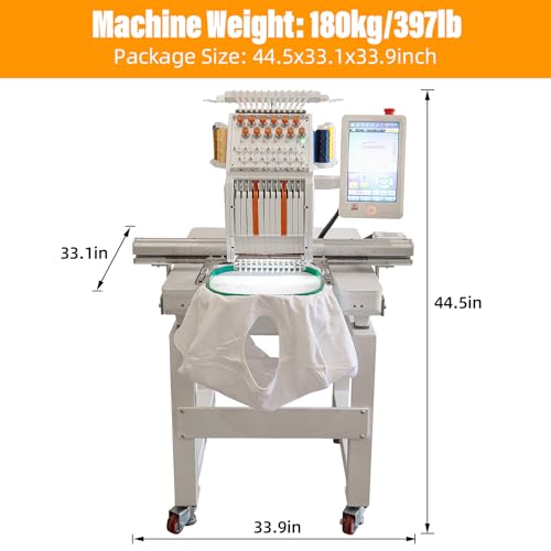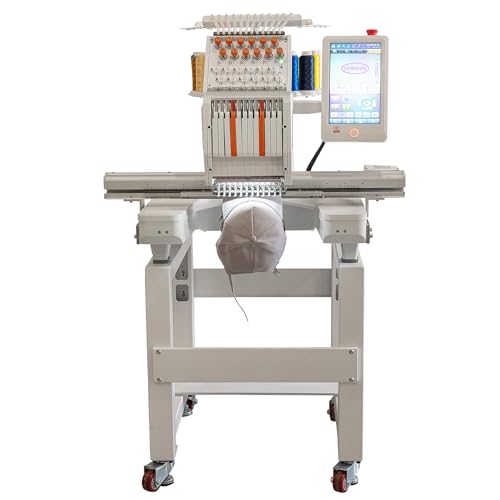 Single Head Embroidery Machine 12 Needles 20×14 Embroidery Area for Flat, Caps and Garments, 1200SPM Max Speed Multi Needle Embroidery Machine with 3D, WiFi Available 10.1″ Touch Screen (1201 CT)