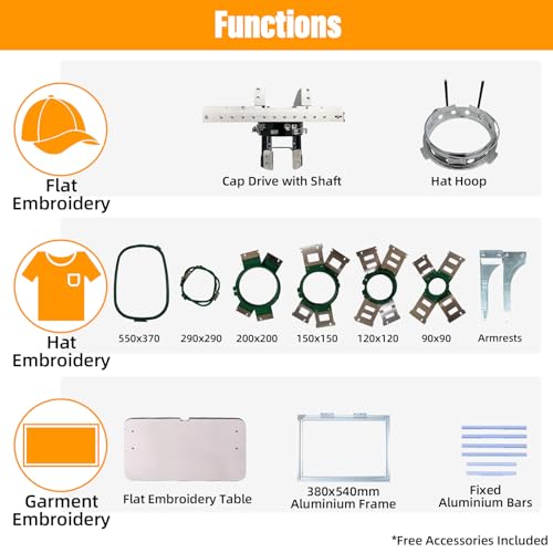 【Complete Commercial Setup Ready for Business】This is the all-in-one embroidery machine solution you need. It supports flat, cap, and 3D puff embroidery right out of the crate. Start your business or expand capacity immediately with this professional commercial embroidery machines equipment. This top-tier embroidery machine for clothing and gear is the smart investment for serious entrepreneurs.