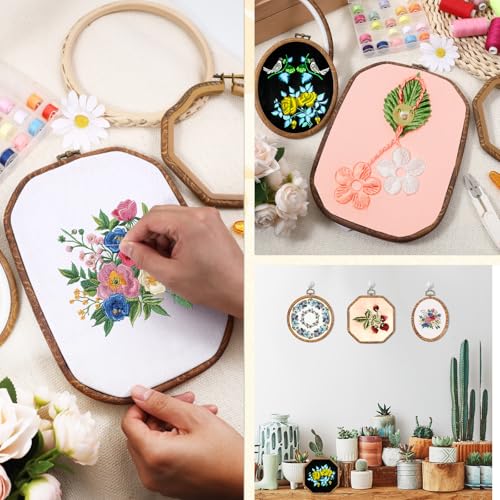 Package Includes: You will receive a scissors and 9 pieces of embroidery hoops in 3 shapes, including circle, oval and octagonal, 3 different sizes for each shape, perfect for accommodating diverse embroidery projects and cross-stitch needs.