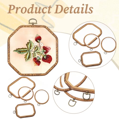 9 Pcs Embroidery Hoop Frame, Large Imitated Wood Cross Stitch Hoop for Display Decorative Embroidery Hoops for Art Craft DIY Sewing and Hanging Ornaments Decor (4 Shape)