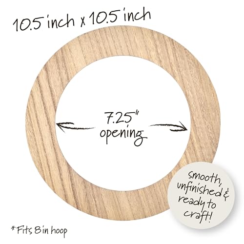 Display your favorite Embroidery Hoops in this circle wood frame. This hoop frame has a wood veneer finish that is perfect for showcasing your embroidery hoop projects. Decorate and give to a friend or paint together as a family. Add the 8” Wood Hoop Frame to your crafting surfaces for a unique touch to your wood creations.