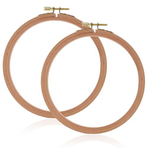 Clofiak 2Pcs 6 Inch Wooden Embroidery Hoops, Beech Cross Stitch Frame with Copper-Plated Screw, Embroidery Rings for Art Craft Sewing, Home Ornaments