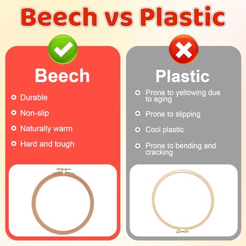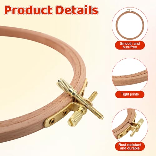 Premium Wood Embroidery Hoop Construction: Crafted from polished beech wood rings, these wooden frames for crafts feature a snag-free surface and rust-resistant pure copper screw. They offer exceptional durability compared to bamboo alternatives.