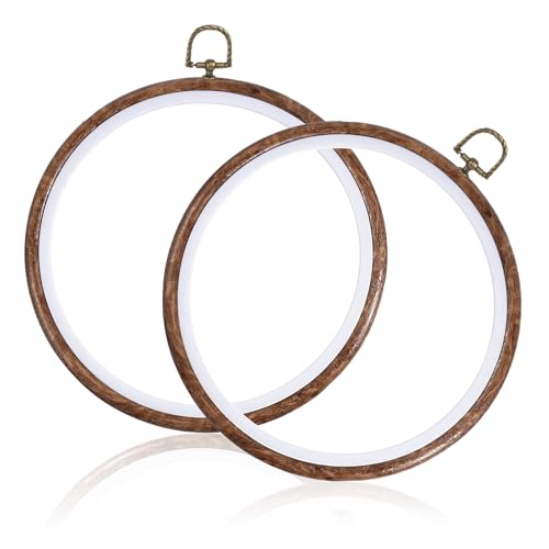 IANFAN 2 Pcs Round Embroidery Hoop Frame, 8 Inch Imitated Wood Embroidery Frame Circle Cross Stitch Hoop for Art Craft Sewing Hanging Ornaments Decor