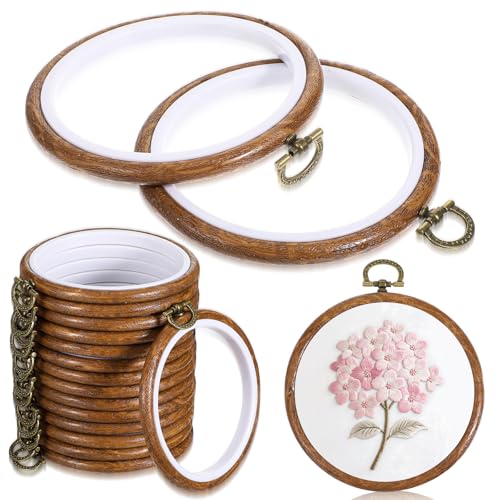 Oqqlin 15 Pcs Embroidery Hoop, 4 Inch Round Embroidery Frame Imitation Wood Cross Stitch Hoop Circle Rubber Hoops for Displaying Cross Stitch, Sewing, Craft, DIY, Hanging Gifts