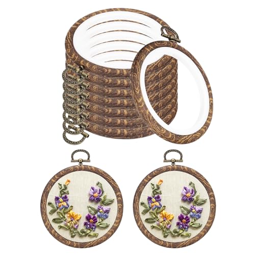PATIKIL 4inch Embroidery Hoops, 10Pieces Imitated Wood Circle Frame Cross Stitch Hoop Ring for Embroidery Art Craft Sewing Ornaments Hanging Decoration