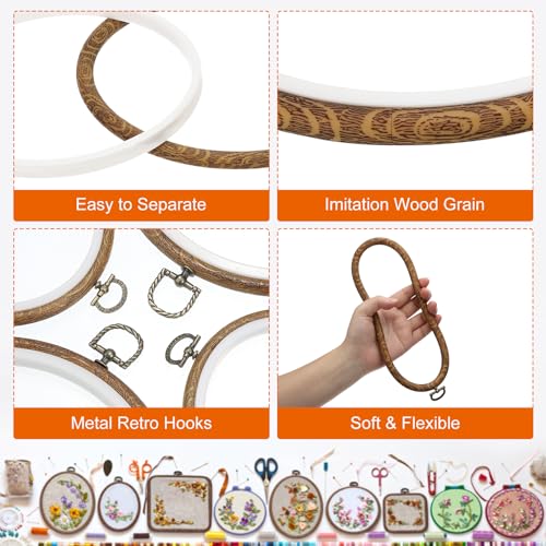 Advantage: Our cross stitch hoop frame is made of rubber plastic, durable and flexible, with good compression resistance, the outer resin hoop has good elasticity and can be easily twisted into an “8” shape to return to its original shape. Retro brass hanging ring with wood grain makes handcrafts more exquisite, anti-skid texture offers a comfortable grip. This embroidered hoop frame features vintage wood grain to add more charm to your embroidery creations.